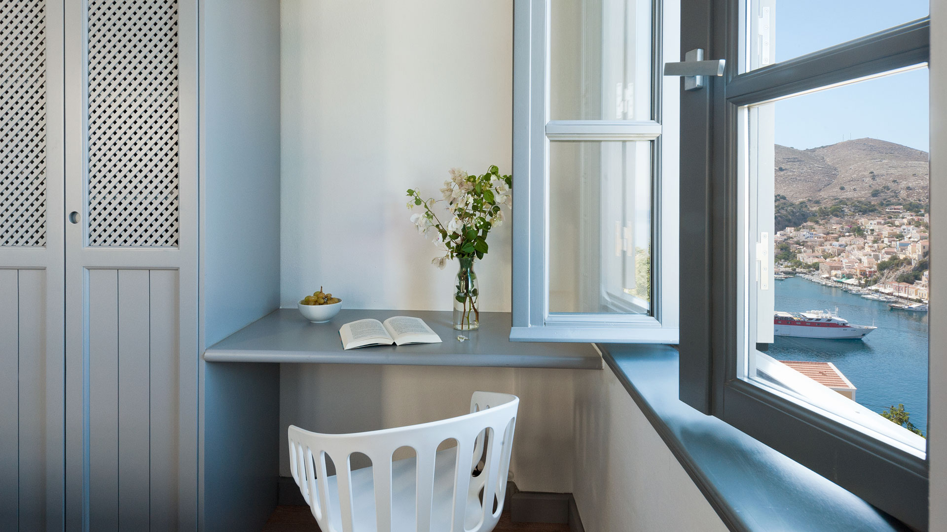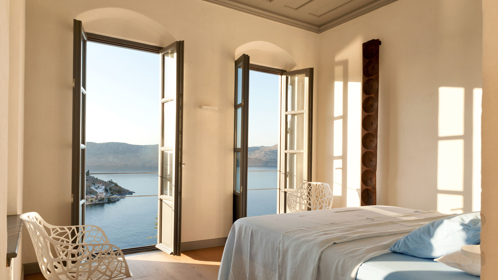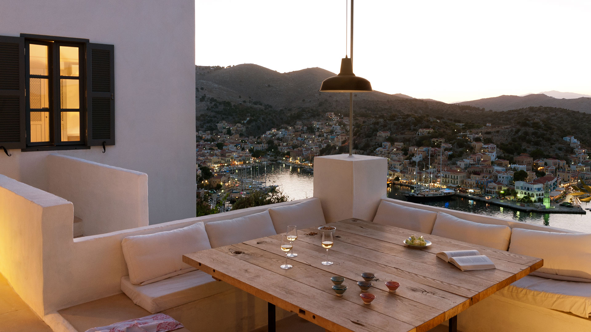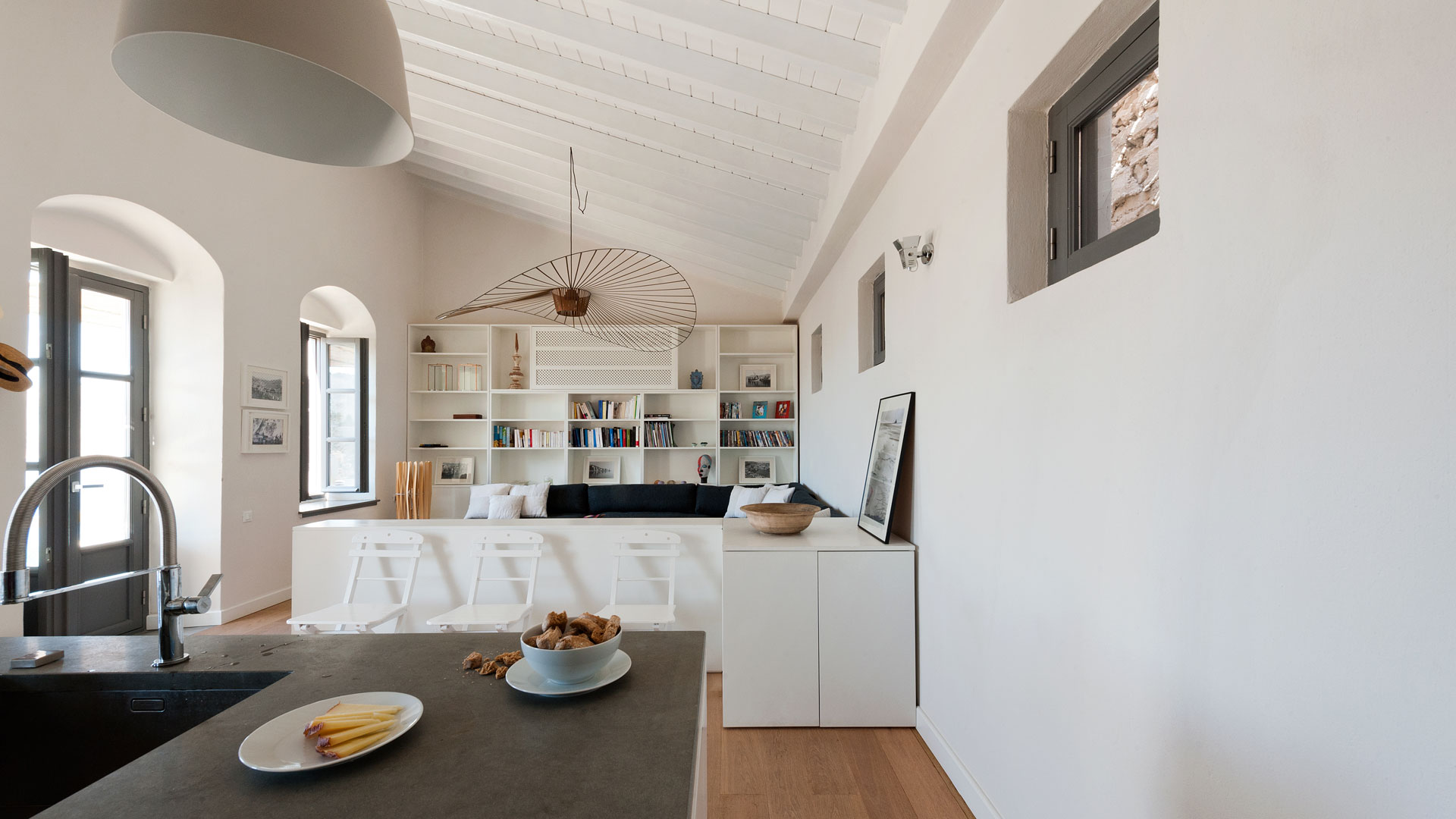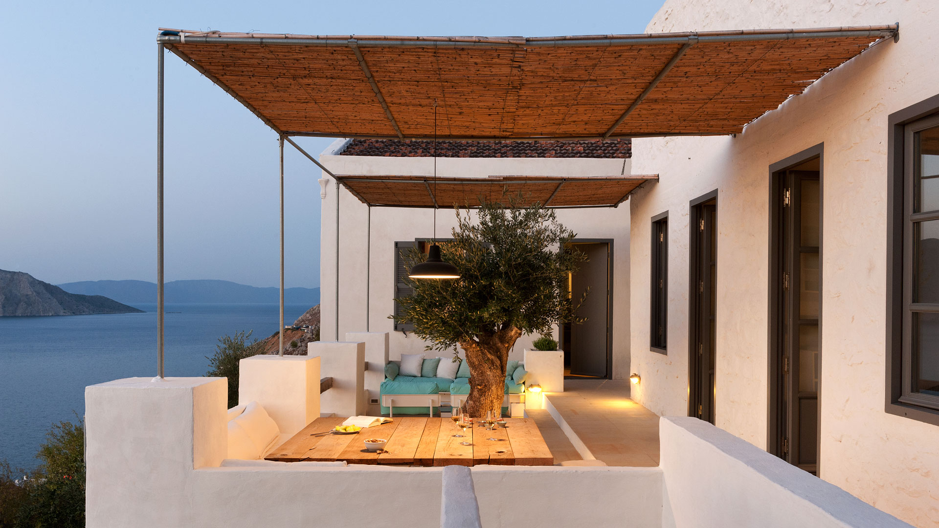 Built from scratch the house is a composition of three free standing buildings positioned between the existing olive trees and terraces. Every opening offers uninterrupted views of the open sea and port.