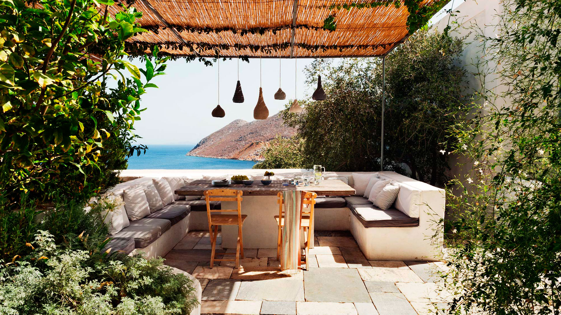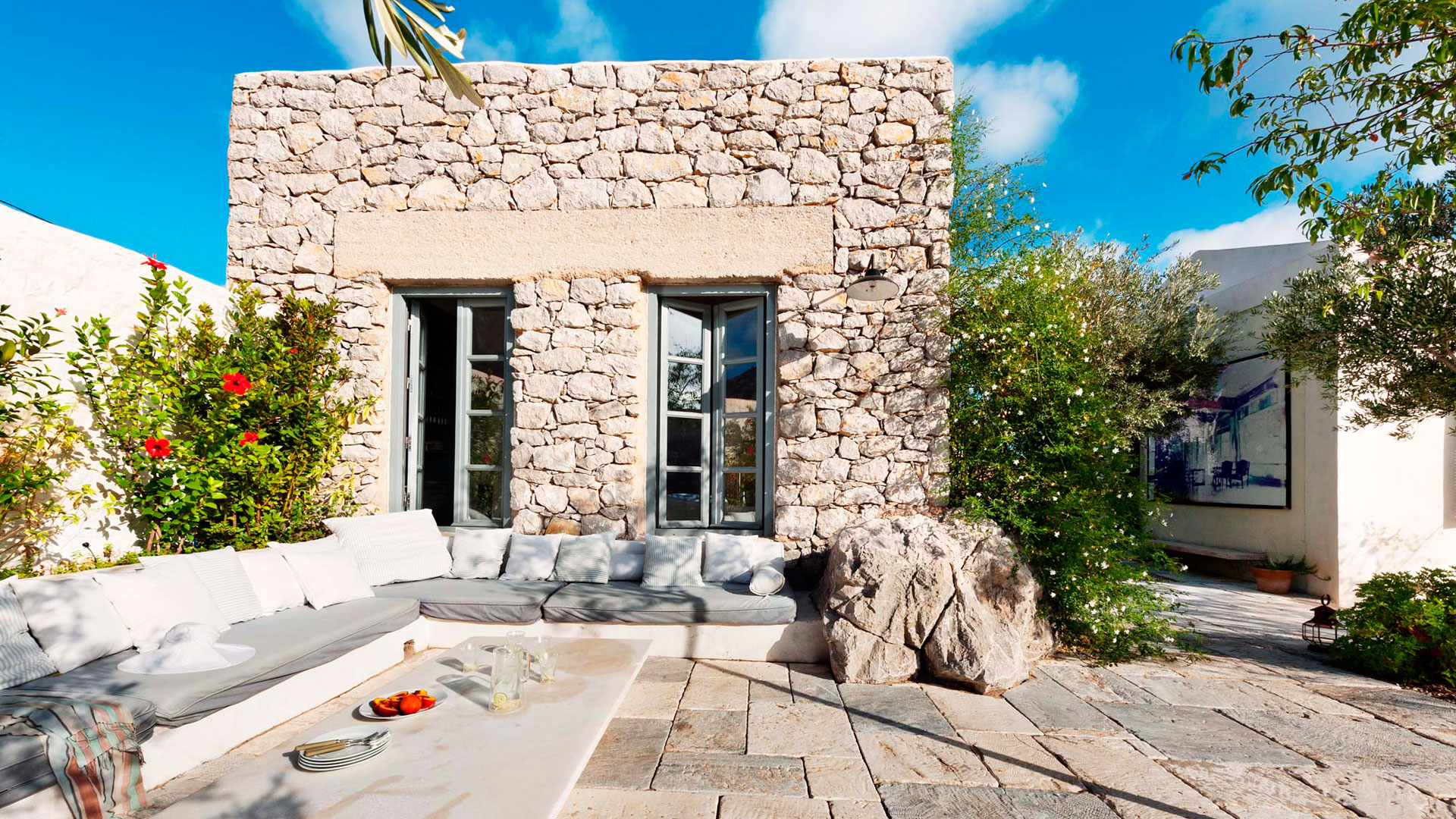 Symi’s moderate to hot climate encourages outdoor living for at least 8 months a year. The built from scratch vacation house is all about the exterior spaces which are created between volumes, walls, rocks & trees. The unlimited views are “organized” through frames in order to create drama & surprise. Interior spaces are basic in order to promote serenity.